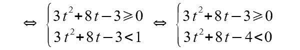 Целая часть квадратного трёхчлена 3t² + 8t – 3 равна нулю в случае, если его значение находится на промежутке [0; 1). Получается, что уравнение равносильно системе: