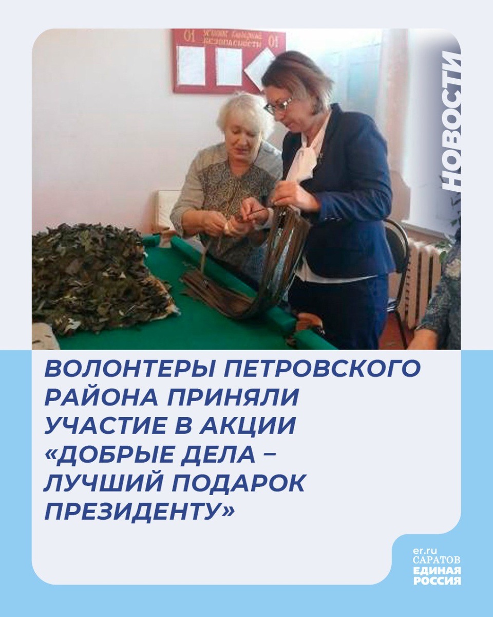 🇷🇺Волонтеры Петровского района приняли участие в акции «Добрые дела – лучший подарок Президенту»