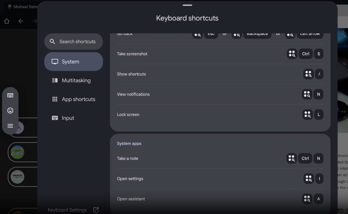 Как отмечается, до выхода Android 14 в меню клавиатуры отображалось только 13 сочетаний клавиш, и сейчас Google обновила его, добавив более полный список. И если на смартфонах это удобно, то пользователи планшетов ощущали некоторую проблему: было сложно дотянуться до вкладок меню сочетания клавиш, поскольку они располагались довольно высоко к центру экрана, до которого на многих планшетах неудобно дотягиваться.