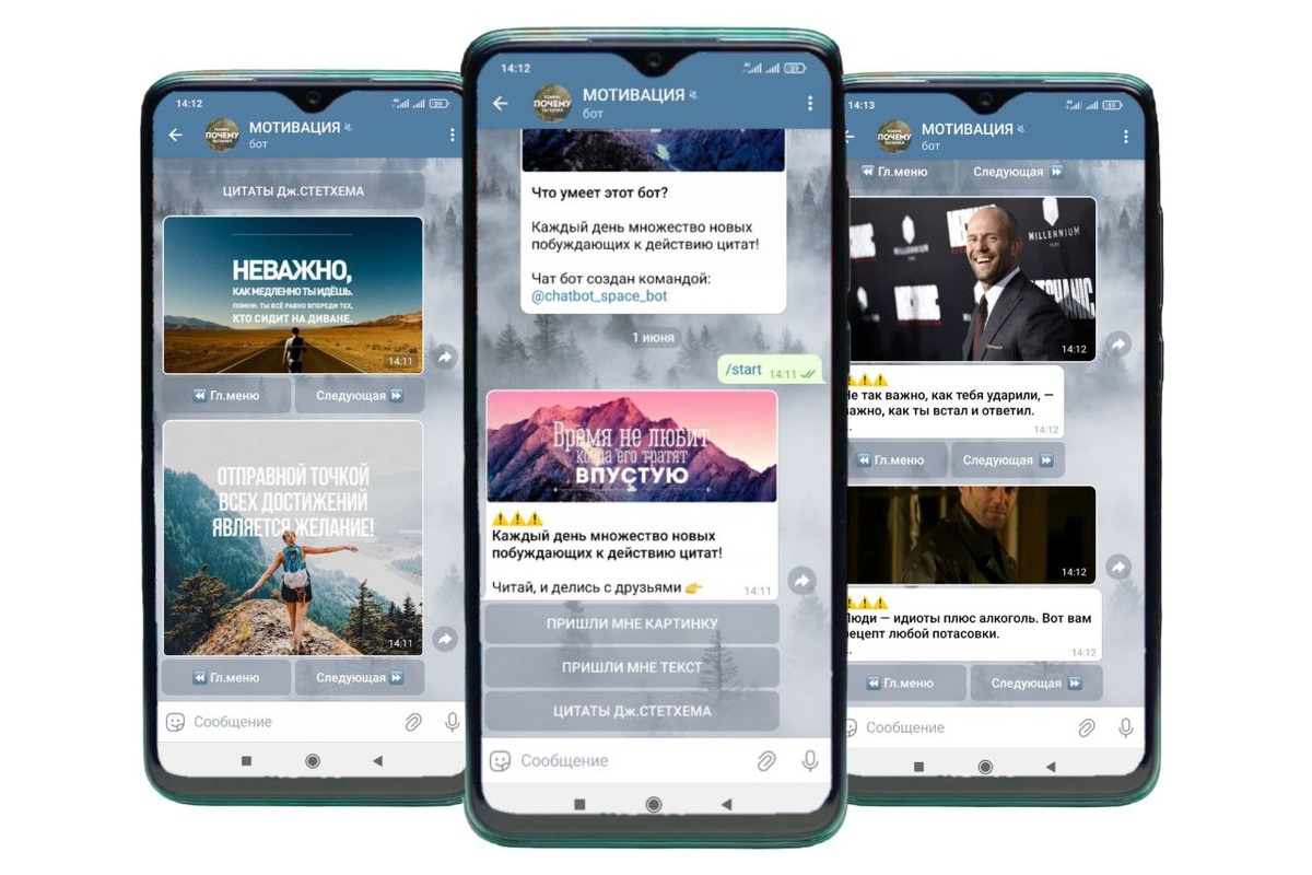 📢 Запустили новый чат-бот от Chat-bot.space: Мотивационные картинки и мемные цитаты Стетхема! Дорогие друзья и поклонники позитивного настроя! С радостью представляем вам наш новый чат-бот, который станет вашим надежным источником мотивации и вдохновения! 🌟 🔹 Что предлагает наш чат-бот? - Мотивационные картинки и тексты: Забудьте о скучных днях — бот будет радовать вас яркими и вдохновляющими изображениями и текстами. - Мемные цитаты Стетхема: Любите мемы? Мы скомпоновали коллекцию лучших цитат Стетхема, которые поднимут настроение и развеселят даже в самый хмурый день! 🔹 Как это работает? Наш чат-бот настроен на рандомный выбор из обширного списка изображений и текстов. В базе данных уже собрано 530 уникальных строк, которые бот будет выдавать вам каждый раз по новому. Каждый раз, когда вы будете запрашивать мотивацию, вы получите что-то совершенно уникальное! 🔹 Зачем использовать наш чат-бот? - Прокачайте свой день: Получайте заряд положительных эмоций и мотивации в любое