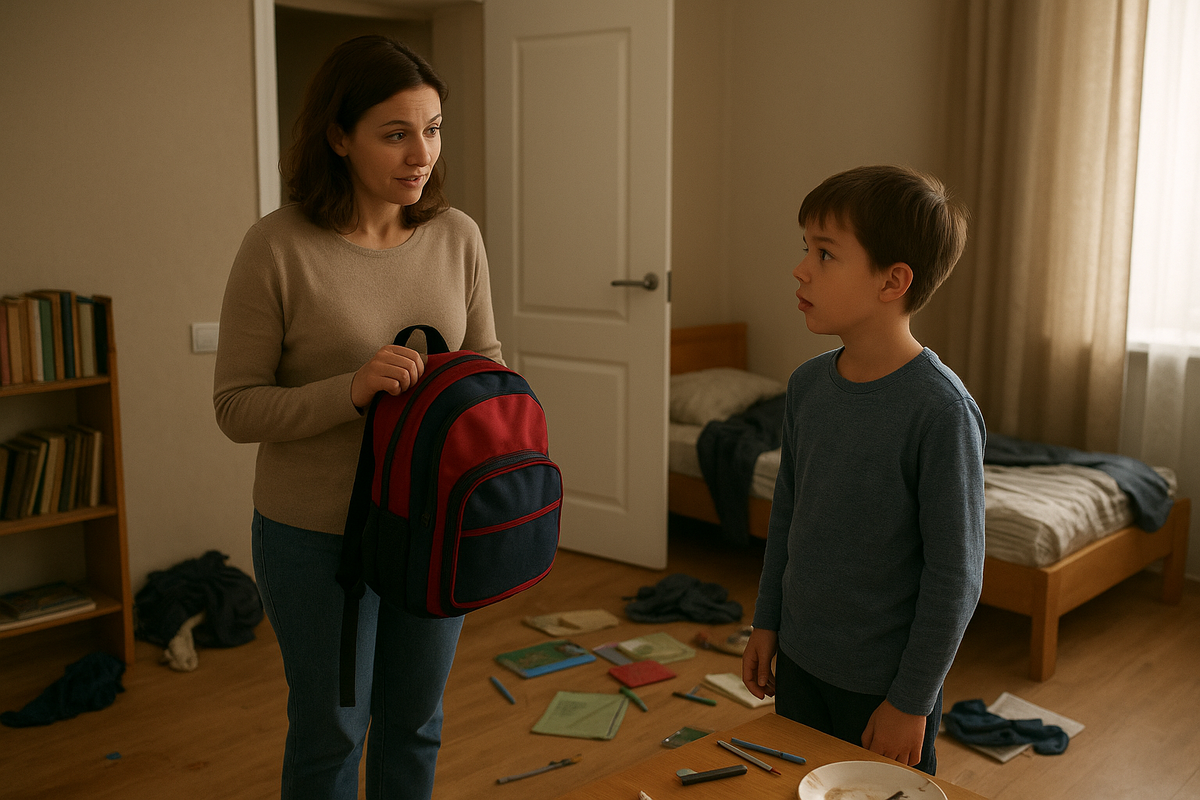 — Мама, ты собрала мой портфель? — голос Миши, как обычно, доносился из комнаты с оттенком паники. В квартире царил лёгкий беспорядок: на полу валялись учебники, тетради, карандаши, а в углу комнаты лежала неубранная школьная форма.