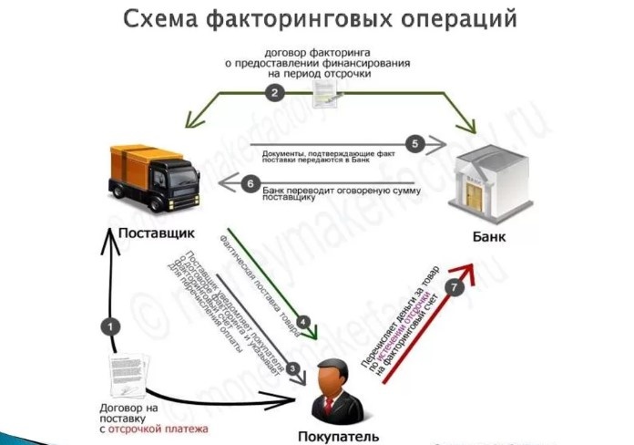 Соглашение о факторинге заключается между поставщиком и фактором. Поставщиком могут быть исполнитель, подрядчик или индивидуальный предприниматель, а фактором – банк, факторинговая или микрокредитная организация.