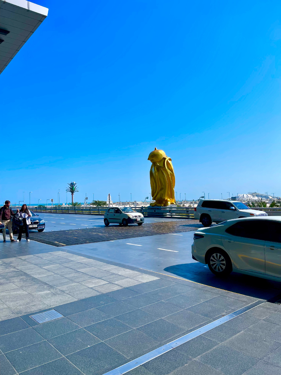 В зоне вылета Золотой Сокол символ страны Аэропорт Hamad Признан по рейтингам одним из лучших аэропортов мира, многим известен по стыковкам в Азию рейсы на Бали, Вьетнам, Малайзию часто летят со стыковками здесь. Отлично продуманная логистика и интересные локации в аэропорту. Чистота, приятный запах. На стойке информации посмотрела номер стойки регистрации Персонала очень много в аэропорту помогут и подскажут. Регулируют очередь, покажут в какую сторону на паспортный контроль идти. Молодцы! Багаж В отеле мне в день вылета нашли весы и взвесили заранее чемодан, а то у меня вечная проблема с перевесом Мой весил 29 килограмм выдохнула. В аэропорту я себе нашла мини-тележку погрузила туда сумку и пакеты в ручную кладь. У меня перелет бизнес-классом отдельная стойка регистрации, там отдельная очередь. Дали приглашение в бизнес-лаундж Oryx Далее прошла электронный паспортный контроль и пошла любоваться 🧸 Искусство в аэропорту Меня встречает огромная скульптура Урс