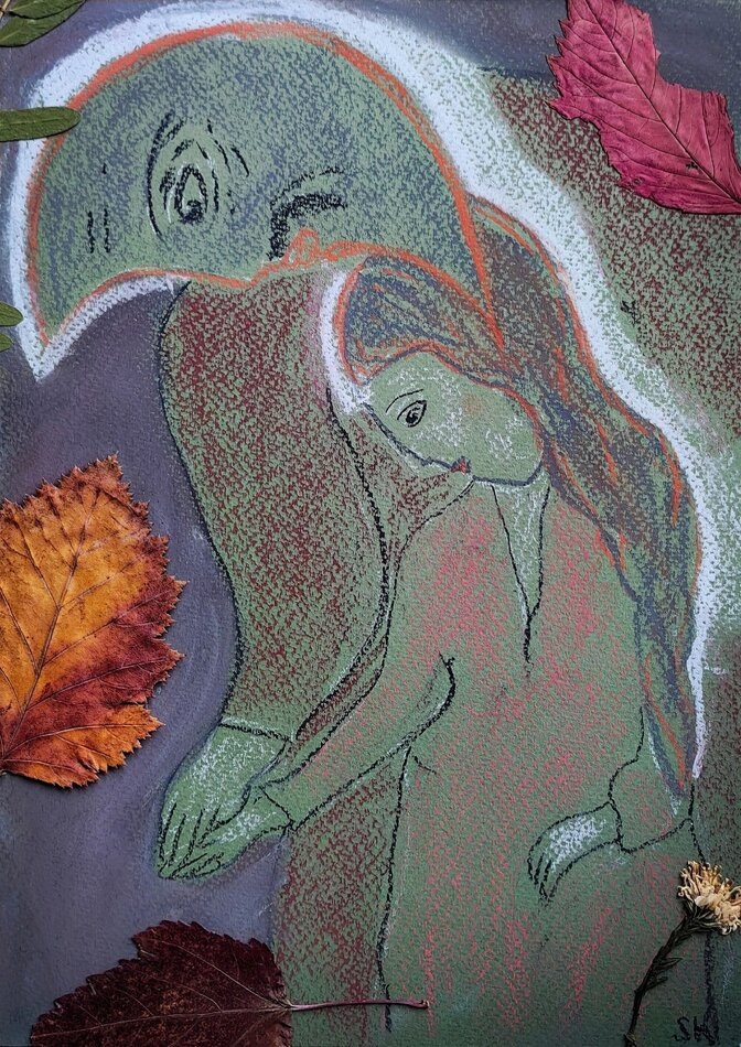 Я регулярно покупаю листы для практики интуитивного рисования, разные цвета спонтанно просятся в руки. В этот раз был среди них оливковый. Когда я выбираю бумагу для пастели мне любопытно, что за рисунок выберет этот фон, какими чувствами это будет сопровождаться, всегда есть некое таинство в процессе. На оливковом фоне появилось "Таинство отца". Рисунок был выполнен в технике интуитивного рисования и когда был закончен, я посмотрела и почувствовала много ресурса. Словно нечто теневое пришло в движение, осуществляя великую передачу плодов и даров. Я вспомнила про фон, почему оливковый? Сразу возникли две ассоциации "таинство" и "зелье", а это для меня посвящение, трансляция опыта, передача его и принятие. Я наполнилась ощущением законченности рисунка и проживания некоего сакрального внутреннего чувства трансформации. Если же вы хотите поработать самостоятельно с этой темой в технике интуитивного рисования: Я желаю Вам чудесной творческой встречи со своими Отцами! авторские рисунки на т