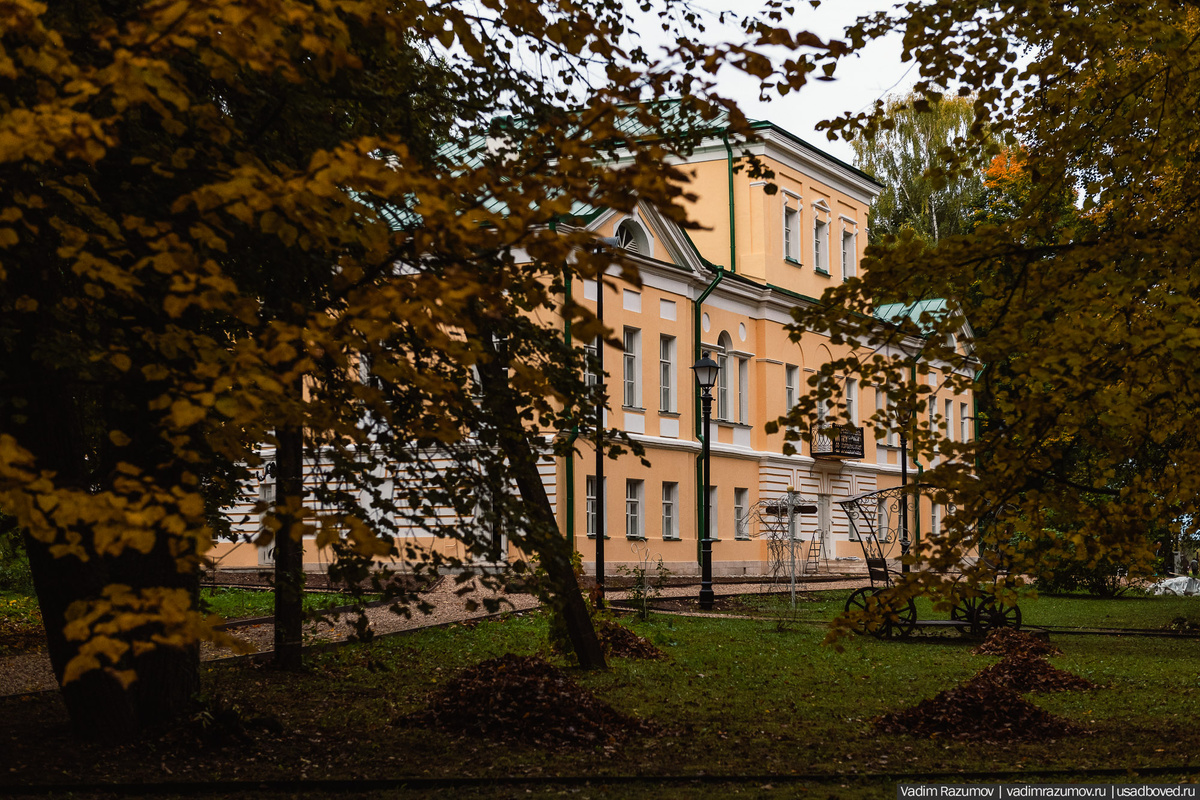 Недавно там отреставрировали фасады дома Вульфов. А осень превратила усадебный парк в ожившие полотна импрессионистов. Посмотрите, как красиво листья лежат на зеркальной поверхности пруда! Согласитесь: хочется удобно устроиться на одной из белоснежный лавочек и часами всматриваться в осенние пейзажи! Пусть этот небольшой фотоотчет вдохновит вас на октябрьские путешествия по усадьбам!