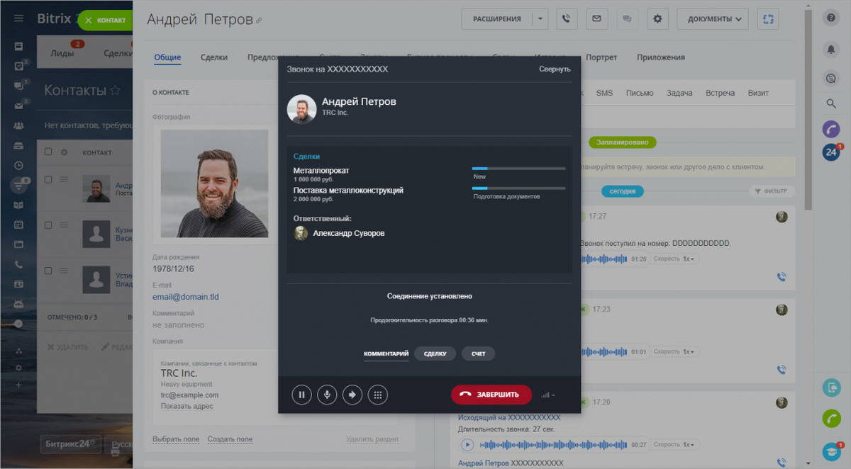 Интеграция телефонии с Битрикс24 Позволяет автоматизировать работу с клиентами и сделать процесс общения более эффективным. Все звонки будут фиксироваться в CRM, и вы сможете: Телефония — это удобный инструмент для отдела продаж и службы поддержки, который ускоряет работу с клиентами. Прежде чем настроить телефонию, необходимо определить, как ваши сотрудники будут и будут принимать звонки: Перед подключением необходимо заключить договор с оператором (например, Mango Office, UIS или Sipuni). Выполните следующие действия: После заключения договора необходимо провести настройки на стороне провайдера: Совет : Если возникнут трудности с настройкой в исходящей и исходящей линии, обратитесь к менеджерам вашего оператора IP-телефонии. Обычно они помогают с настройками и могут также помочь установить коммуникатор. Теперь, когда все формальности с оператором завершены, можно приступить к работе с Битрикс24. Следуйте этим шагам: Скриншот 1 : Главное меню -> Контакт-центр -> Телефония Кликаем "