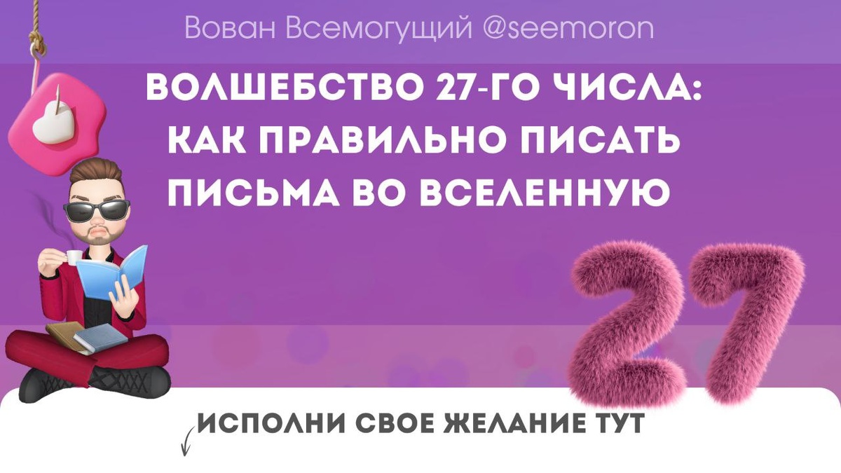 Сегодня особенный день, феюшки и волшебницы! 27-е число — волшебное в симоронской традиции. Это время, когда можно буквально достучаться до Вселенной с вашими желаниями! Я уже неоднократно писал про это, но хорошее дело не грех повторить. Ведь такие дни, как 27-е, бывают всего раз в месяц, а волшебные результаты ждут тех, кто правильно настроен. Письмо во Вселенную — это мощный ритуал, который поможет вашим желаниям воплотиться в жизнь. Да-да, речь идёт не просто о бумажке с желаниями, а о настоящем волшебстве! Первое и главное: поблагодари Вселенную за всё хорошее, что случилось за последний месяц. Ведь если мы не ценим то, что уже есть, как же ждать большего? Здесь нужно проявить конкретику. Одно большое желание, которое должно исполниться в течение месяца. Реальные цели — вот что работает. Напиши то, чего ты реально ждёшь и представляешь. Не просят же, к примеру, яхту или виллу на Канарах, если ты пока что на трёшку собираешь, верно? Чтобы всё прошло гладко, загадай ещё одно маленьк