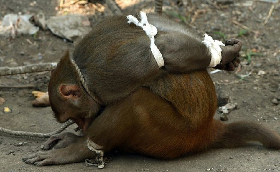 Кто бы мог подумать, что в Мумбаи, Индия, наказывать за нарушение общественного порядка могут не только людей, но и животных. Но что им остается, когда некоторые из обитающих поблизости обезьян настолько терроризируют местных жителей, что просто спасу нет. Вот, например, в последнее время банда, состоящая из 3-4 обезьян, целых шесть месяцев докучала людям своим ужасным поведением. К счастью, профессиональному ловцу обезьян не так давно удалось поймать одну из них. Ее обвинили в воровстве еды, порче подушек, громком крике и прочих неподобающих делишках. Прежде чем посадить преступницу в клетку, ее в воспитательных целях крепко связали. Происходящее может показаться несколько жестоким, но такие меры просто необходимы. Поскольку если это животное вовремя не остановить, оно начнет вести себя намного хуже. В Индии обезьян почитают. И хотя они очень часто мусорят на улицах, в офисах, на крышах домов и порой даже нападают на людей, чт