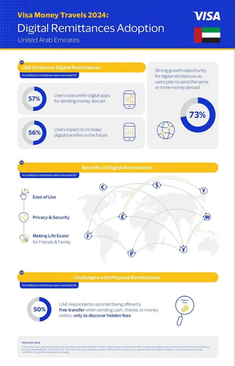 ОАЭ, ведущая страна денежных переводов с более высоким процентом отправителей денег по сравнению с получателями, лидирует в мире по более быстрому внедрению цифровых методов отправки денежных переводов.