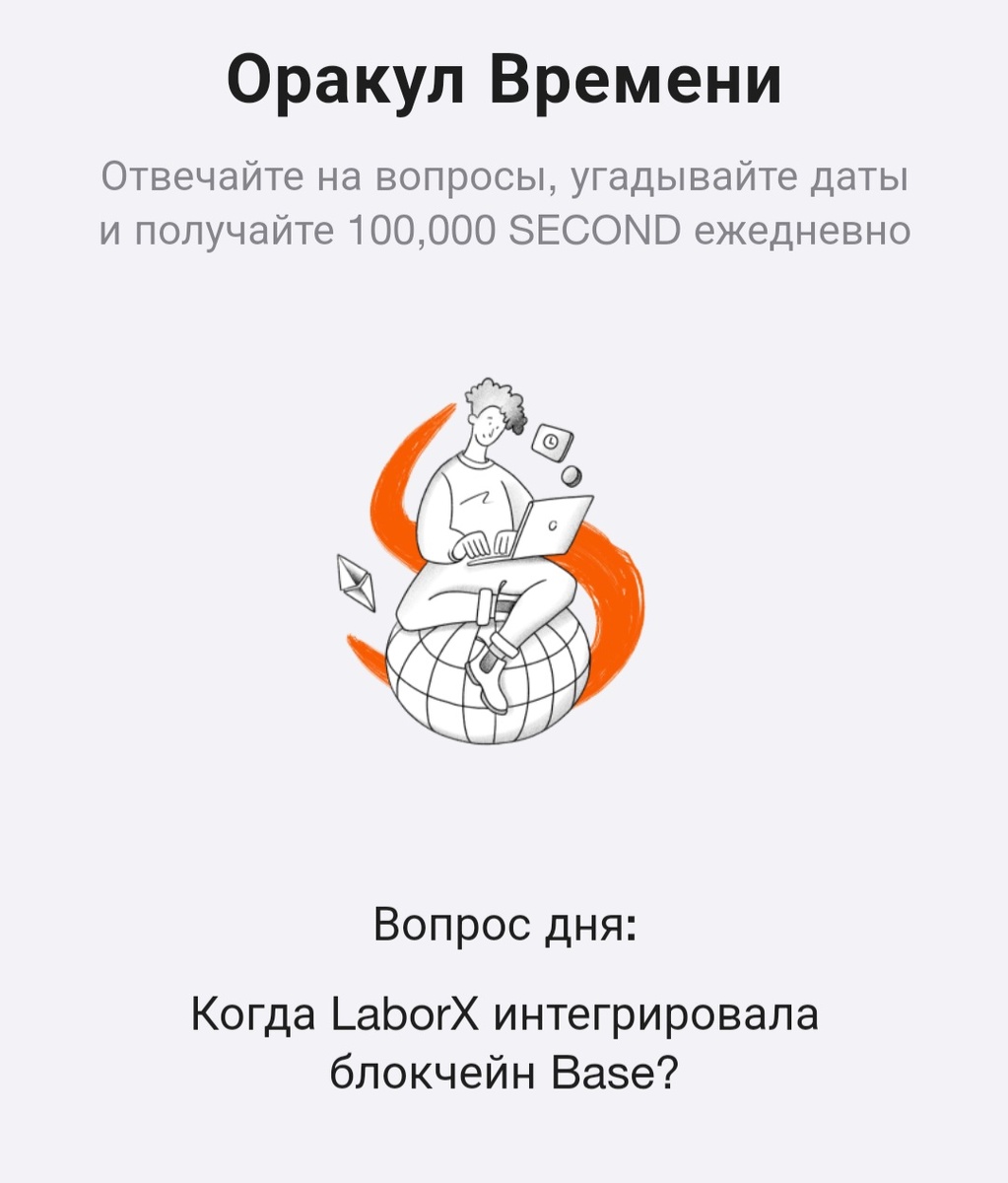 Time Farm Oracle. Вопрос от 10.10.2024 Когда LaborX интегрировала блокчейн Base? Ответ: 10.05.2024 Подпишись в телеграмм канал, чтобы следить за новостями проектов