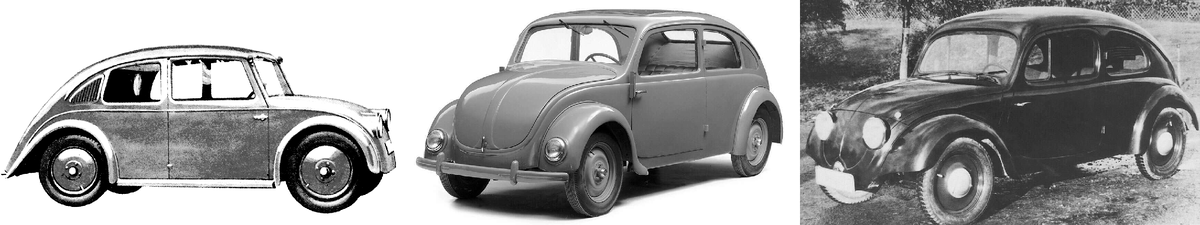 Выполнение всего перечисленного могло быть возможно только при радикальных технических решениях естественно не обошлось без заимствованний. Например основное решение по компановке - опозитный мотор в заднем свесе за задней осью было скопировано у чехословацкой Tatra v570 Ганса Ледвинке и Палом Джараем авиконструктором занимавшимся гидросамолетами и дерижаблями. Но нужно отметить что это был лишь прототип, не серийная машина плюс она послужила основой для первого Фольксвагена не на прямую а через прототип заказанный у Фердинанда компанией NSU в 1934 году и уже он лег в основу VW Prototype 3 Series 1935 года. Отличия от прототипа 3 сериий и серийной машины не принципиальны, а значит можно перейти от истории и эволюционных моментов к разбору дизайнерских решений.