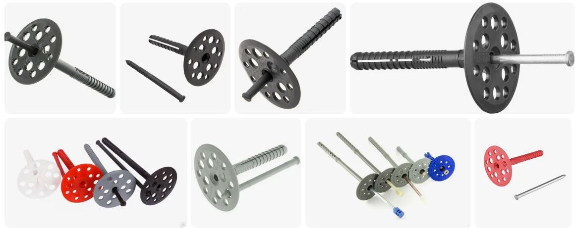 Самое главное что вы должны учитывать это то , что покупая эти крепления которые представляют из себя пластиковый дюбель в виде грибка с забивным гвоздем. Сам гвоздь тоже нужно брать обязательно пластиковый. Так как бывает такое что люди думают что металлический будет лучше держать , но как раз металлический и создает мостик холода от которого эффективность утепления резко снижается. Поэтому не верьте теоретикам и покупайте все детали крепления только из пластика.