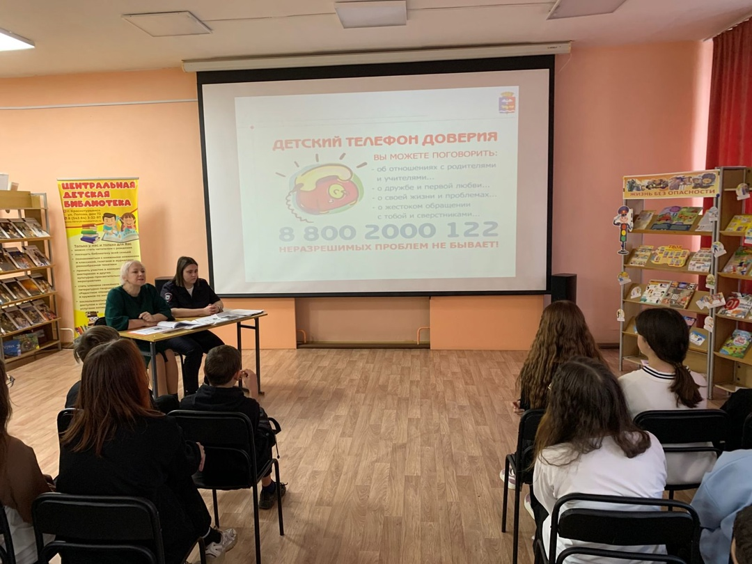 8 октября в рамках проведения акции «Неделя профилактики» на базе Центральной детской библиотеки для учащихся 8 классов школы № 24 проведено информационное мероприятие по профилактике дистанционного вовлечения несовершеннолетних в совершение преступлений (хранение, употребление и сбыт запрещенных веществ, мошенничества, диверсии) за денежное вознаграждение и формированию у несовершеннолетних норм безопасности жизнедеятельности.
