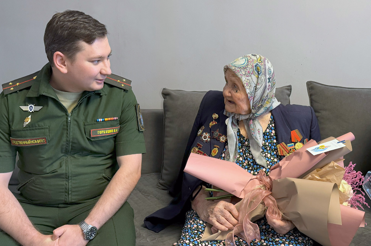 Офицеры 522-го военного следственного отдела Следственного комитета России поздравили со 100-летним юбилеем участницу Великой Отечественной войны Галину Маджидовну Белялову, проживающую в городе Буйнакске Республики Дагестан. 19-летней девушкой она ушла на фронт, спасла много жизней и вернулась домой с Победой! Галина Маджидовна родилась в 1924 году в Сталинградской области. Когда ей было семь лет, семья из Астрахани переехала в Буйнакск. После окончания школы девушка поступила на курсы медсестер, которые окончила в июне 1941 года. А через день началась Великая Отечественная война. Галина тут же обратилась в местный райком комсомола с просьбой отправить ее на фронт. Тогда юной медсестре отказали. Сначала она заведовала фельдшерским пунктом, а с января 1942 года стала работать в эвакогоспитале в Буйнакске. Практически сутками не отходила она от раненых, делала перевязки и уколы, кормила и писала за них письма. И все же мысли о фронте не покидали ее. И вот в январе 1943 года Галина Белял