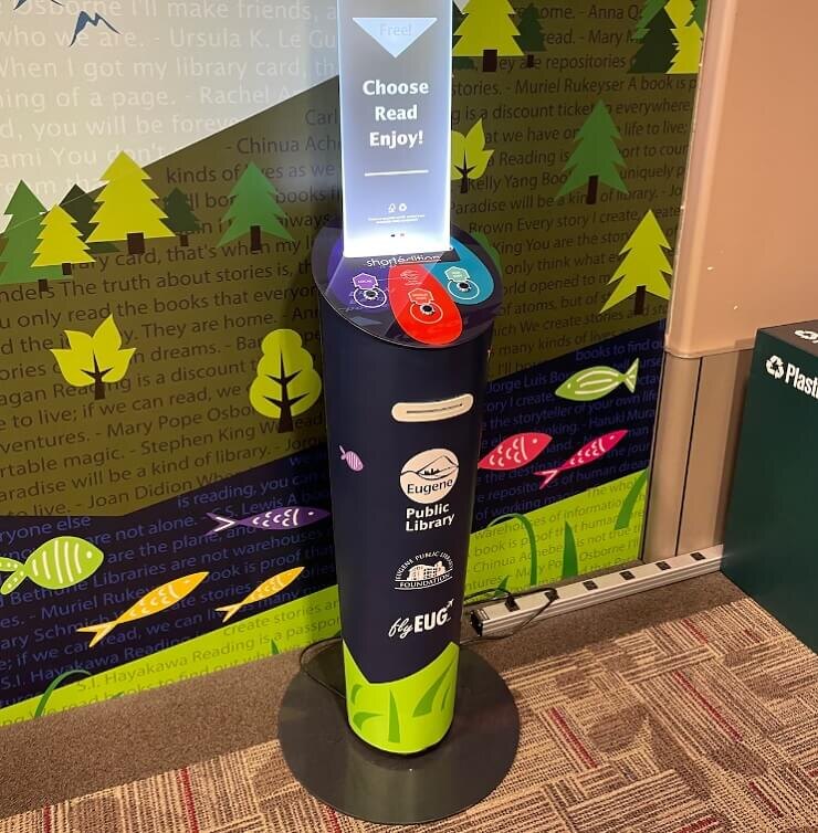 Путешественники могут найти всевозможные товары и продукты в автоматах самообслуживания аэропортов: конфеты, газировку, косметику, электронику. Но в американском аэропорту Юджин в штате Орегон установили автомат, который бесплатно печатает короткие тексты рассказов. В аэропорту находится единственный в штате диспенсер коротких рассказов, который принадлежит французскому издательству Short Édition. Компания имеет 300 диспенсеров в США. Автоматы установлены на железнодорожных станциях, общественных библиотеках, а теперь еще и в аэропорту. Диспенсер предлагает короткие рассказы, разбитые по категориям по приблизительному времени, которое может занять его прочтение. Диспенсер в аэропорту Юджина предлагает читателям выбор между рассказами местных авторов, авторов со всего мира и детских авторов. Стоимость автомата Short Édition составляет $7000 плюс расходы на доставку за диспенсер и $2300 за годовую подписку на контент. Это покрывает авторские права авторов, доступ к порталам и