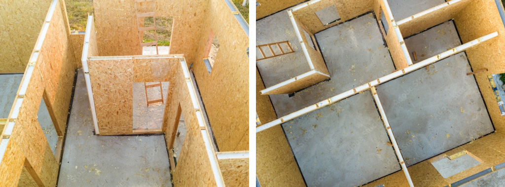 В случае, если стройку необходимо прервать на длительное время, то используют специальные пропитки, ветровлагозащитные мембраны и т.д. Оставлять без финишной отделки дом из СИП, например с ОСП плитами, можно не более чем на один год.