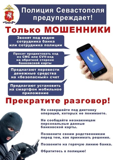 Полиция Севастополя предупреждает: остерегайтесь дистанционных мошенников!