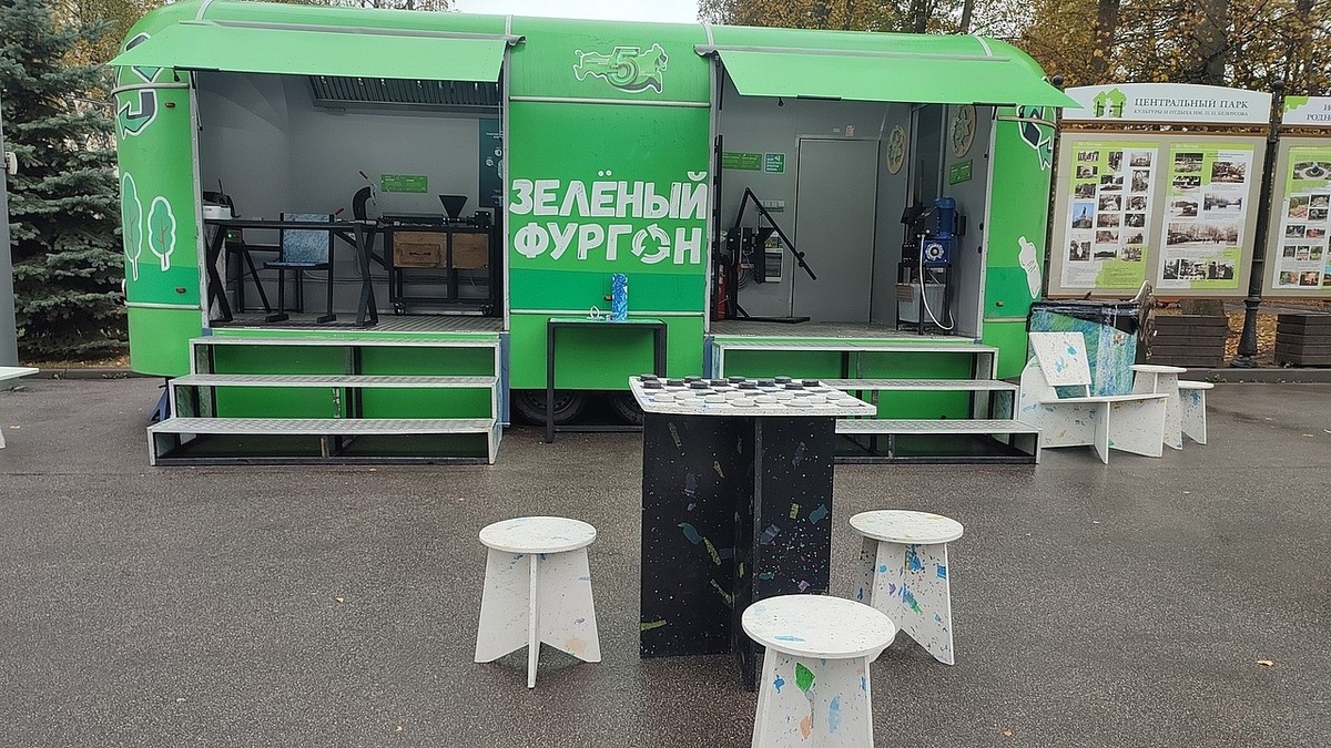 Мастерская переработки «Зелёный фургон» будет работать в Центральном парке Тулы с 10 по 12 октября. В интерактивной зоне все желающие смогут увидеть, как отходы превращаются в новую продукцию. На наглядных примерах здесь показывают, что отходы – это ресурс, который можно возвращать в оборот по принципам экономики замкнутого цикла. Пластиковые крышки от бутылок в мастерской можно измельчить велошредером. Здесь же предложат сыграть в шахматы из вторичного сырья. Для гостей фургона подготовлены сувениры. «Зелёный фургон» расположился на входе в Центральный парк со стороны площади Искусств. Фото – «Тульские парки»