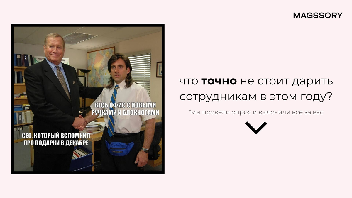 Мы в Magssory решили немного облегчить эту задачу и провели небольшое, но показательное исследование. Мы спросили у работников разных сфер и уровней — от рядовых специалистов до руководителей — что они точно не хотели бы получить в качестве корпоративного подарка. А чтобы узнать подробности — читайте далее.
