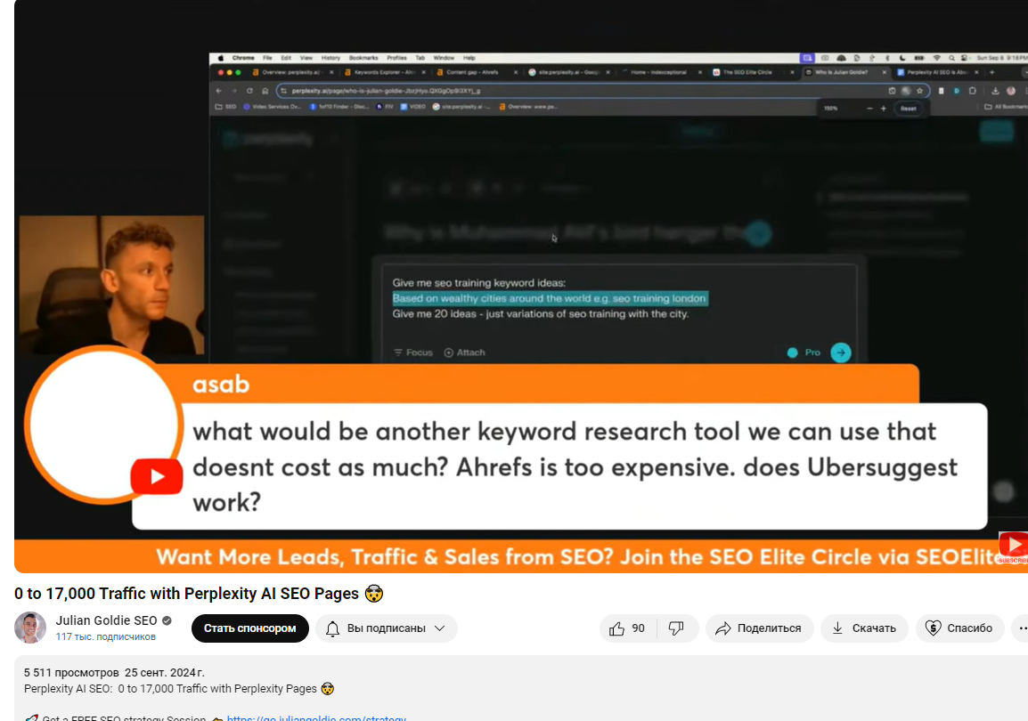 Представляем вашему вниманию статью про контент маркетинг в поисковых системах, составленную Дмитрием Андрияшкиным, преподавателем Школы дизайна НИУ ВШЭ и маркетологом с 22-летним опытом. Подписывайтесь на его телеграм. Так как ютуб сильно замедлился перескажу Вам интересное видео про контент маркетинг. В своем видео "0 to 17,000 Traffic with Perplexity AI SEO Pages" Джулиан Голди демонстрирует, как использовать Perplexity Pages - инновационный инструмент, позволяющий создавать страницы, которые могут ранжироваться в Google, даже если у вас нет собственного сайта с высоким авторитетом. Вот подробное руководство, основанное на его видео: 1. Создание страницы для продвижения контент маркетинга Войдите в Perplexity Pro. Введите ключевое слово или фразу в поисковую строку. Нажмите кнопку "Convert to Page". 2. Редактирование контента После генерации страницы крайне важно её отредактировать: Измените заголовки для лучшей оптимизации под ключевые слова. Добавьте медиафайлы (изображ