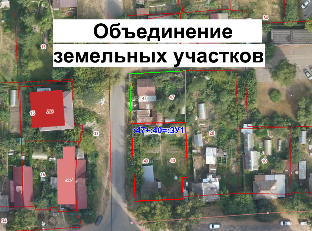 Объединение земельных участков – это образование одного земельного участка из нескольких. Существование исходных земельных участков прекращается. Необходимые требования: Важно обратить внимание на образуемую площадь земельного участка! Для каждой территориальной зоны установлены предельные максимальные и минимальные размеры земельных участков. При объединении земельных участков у собственника возникает право собственности на образуемый земельный участок. При объединении земельных участков, принадлежащих на праве собственности разным лицам – возникает право общей собственности на образуемый земельный участок. При объединении земельных участков, принадлежащих на праве общей собственности – возникает право общей собственности на образуемый земельный участок. Порядок: Объединение земельных участков допускается в случае, если все земельные участки предоставлены на праве постоянного (бессрочного) пользования, праве пожизненного наследуемого владения или праве безвозмездного пользования ОДНОМ
