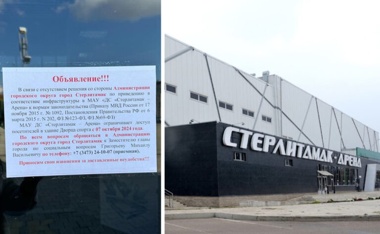 На днях в соцсетях появилась информация, что «Стерлитамак-Арена» ограничит доступ посетителей с 7 октября 2024 года. Текст объявления на дверях Дворца спорта гласил: «В связи с отсутствием решения со стороны администрации городского округа город Стерлитамак по приведению в соответствие инфраструктуры в МАУ «ДС «Стерлитамак-Арена» к нормам законодательства (Приказу МВД России от 17 ноября 2015. №1092, Постановления Правительства РФ от 6 марта 2015 №202, ФЗ №123-ФЗ, ФЗ №69-ФЗ) МАУ «ДС «Стерлитамак-Арена» ограничивает доступ посетителей в здание Дворца спорта с 7 октября 2024 года». Сегодня, 10 октября, администрация города сообщила, что с 11 октября Дворец спорта будет работать в штатном режиме. Других комментариев не было. По сообщению «Стерлитамак-Арены», администрация города направила утвержденный план мероприятий по устранению нарушений законодательства об антитеррористической защищенности и противопожарной безопасности. Согласно документу, полученному нами от Дворца спорта, до 15 ок