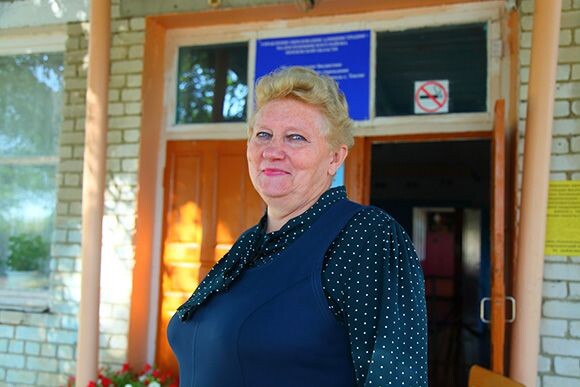 Пока мы рассматривали монумент, подошла директор Надежда Ивановна Захарова. Она родилась и выросла в Топлом, 50 лет в профессии, 40 из них занимает должность руководителя. Можно сказать, не одно поколение топловцев вышло из-под ее крыла.
