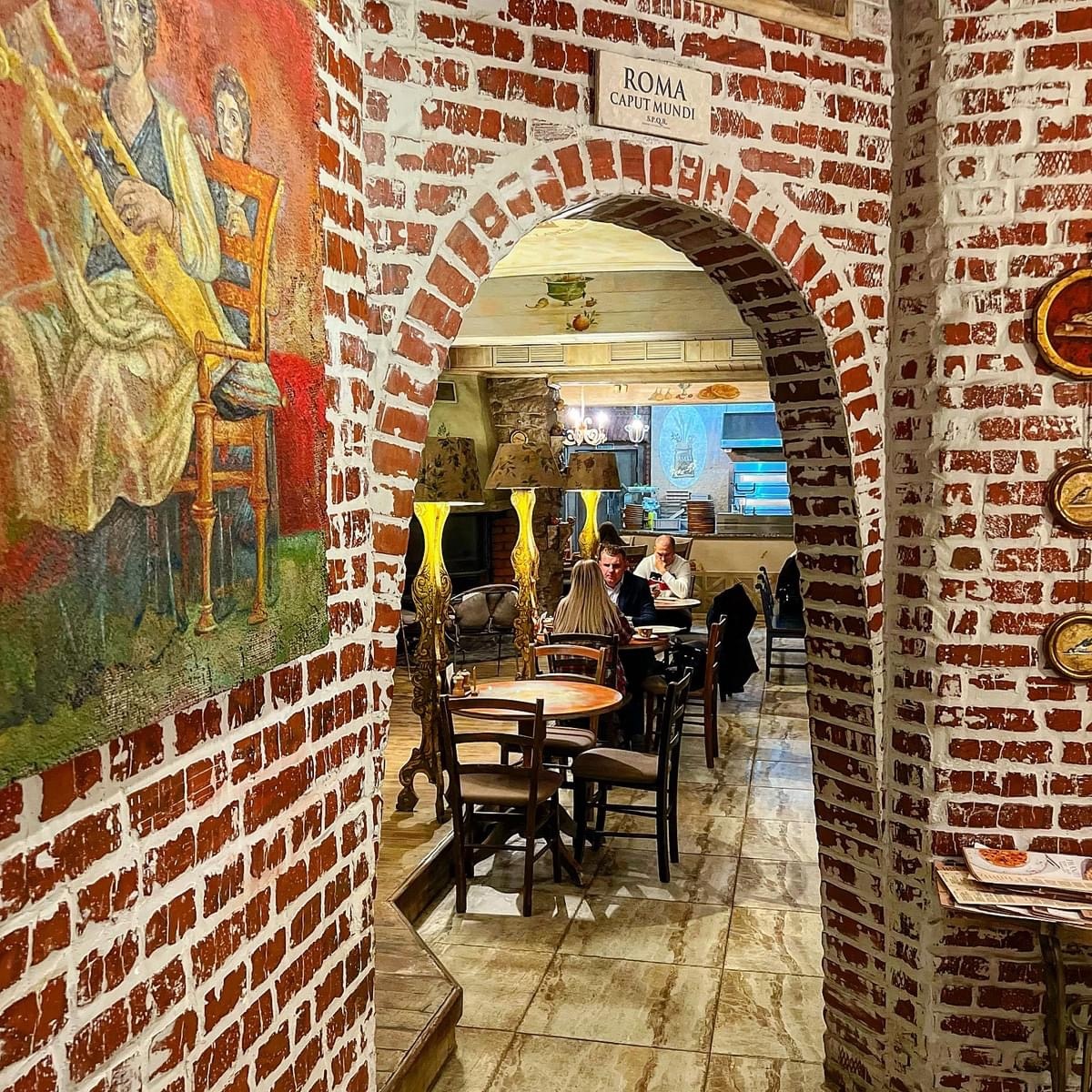 Волею случая отобедал в ресторане RomaAntica. Давно здесь не был и скажу сразу — ничего не изменилось. Для тех, кто не знает, это филиал популярной пиццерии Papa Carlo, только в формате ресторана. Каменные стены и многочисленные фрески создают атмосферу Древнего Рима, как, собственно, и переводится название. Обеденное меню есть, называется Pranzo. Из него и заказал салат и пасту. Салат с креветками по 190 ₽. В составе: салат листовой, пекинская капуста, болгарский перец, креветки, жареные цукини, имбирная заправка. Украшается петрушкой. Креветок в салате насчитал с десяток. Хотя они и небольшие, но тем не менее, за 190-то рублей! Такими узкими вилками, какие приносят, есть этот салат не очень удобно. И вот почему. Ингридиенты порезаны мелкими кусочками. Их и не наколоть, и не зачерпнуть так, чтобы захватить сразу все. Просите ложку! По вкусу же салат нормальный и своих денег стоит. Единственно, вкус креветок полностью перекрывается болгарским перцем и достаточно активным соусом