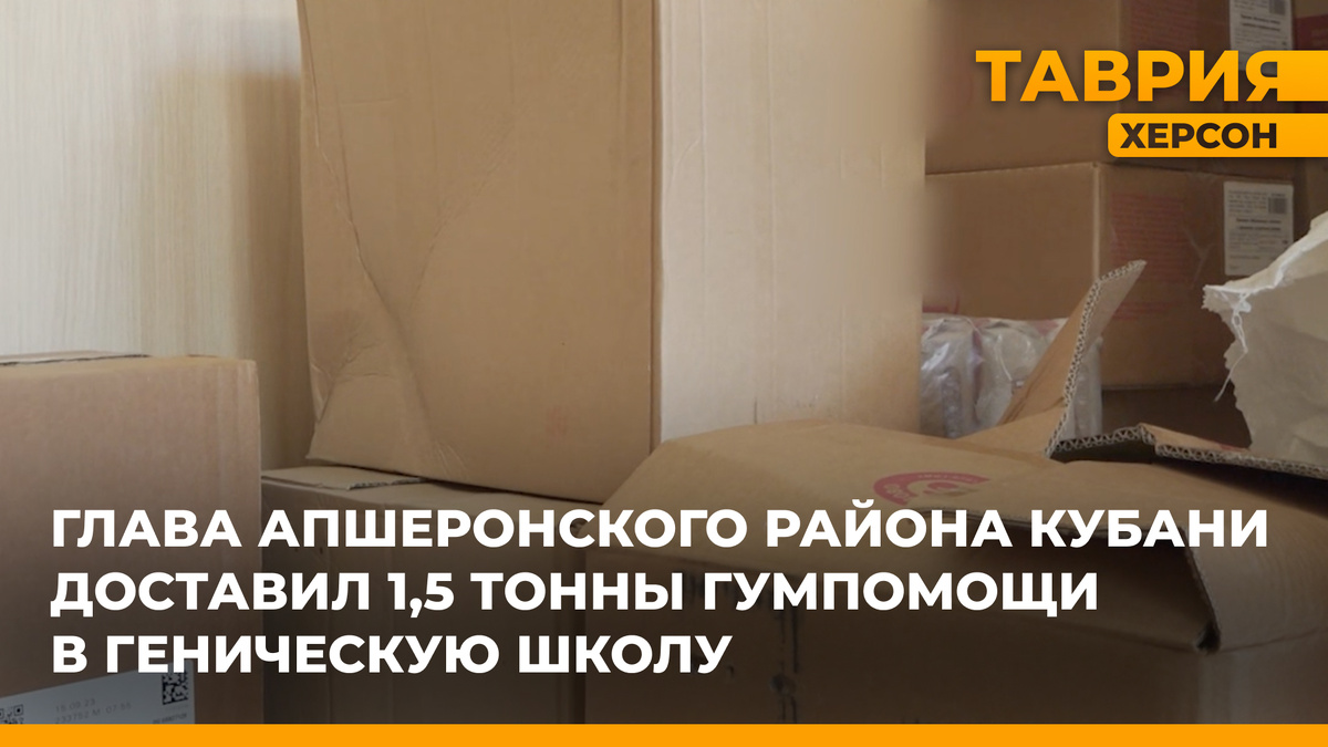 Глава Апшеронского района Краснодарского края посетил Генический центр творчества и школу №4. Он привез 1,5 тонны гуманитарной помощи для этих учреждений. В состав гуманитарной помощи для школы вошли продукты питания, бытовые принадлежности и средства гигиены. Кроме того, были доставлены медикаменты и оборудование для обучения. «В данной школе более 300 деток учится. В дальнейшем мы будем ее сопровождать, помогать и поддерживать. Потому что чужих детей не бывает», — сказал глава Апшеронского района Краснодарского края Алексей Передереев. Для Генического центра юношеского и детского творчества были привезены костюмы: 12 русских народных комплектов, необходимых для выступлений на сцене. Глава Апшеронского района подчеркнул, что это его первый визит в Херсонскую область, но он не будет последним. Ранее ТРК «Таврия» сообщала, что учащиеся средней школы № 7 из Майкопа, столицы Республики Адыгея, организовали сбор гуманитарной помощи для своих сверстников из Херсонской области. ]]>
