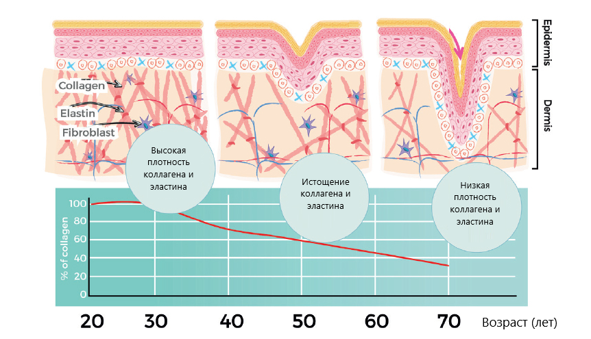 Морщины, потеря упругости и другие признаки старения затрагивают каждого из нас. Давайте разберемся, как образуются морщины и что мы можем сделать, чтобы замедлить этот процесс. Кожа – это самый большой орган нашего тела, состоящий из трех основных слоев: эпидермиса (внешний слой), дермы (средний слой) и подкожной клетчатки (внутренний слой). Дерма играет ключевую роль в поддержании упругости и эластичности кожи благодаря наличию коллагена и эластина. Эти белки обеспечивают структуру и поддержку, а также помогают коже восстанавливаться после повреждений. С возрастом выработка коллагена и эластина уменьшается, а волокна становятся менее плотными и более рыхлыми. Это приводит к образованию морщин, тонких линий и складок. В современном мире уход за кожей стал неотъемлемой частью повседневной жизни для многих людей, что особенно важно после 30 лет, когда начинается естественный процесс старения. Среди множества косметических продуктов, представленных на рынке, особое внимание заслуживает Ж