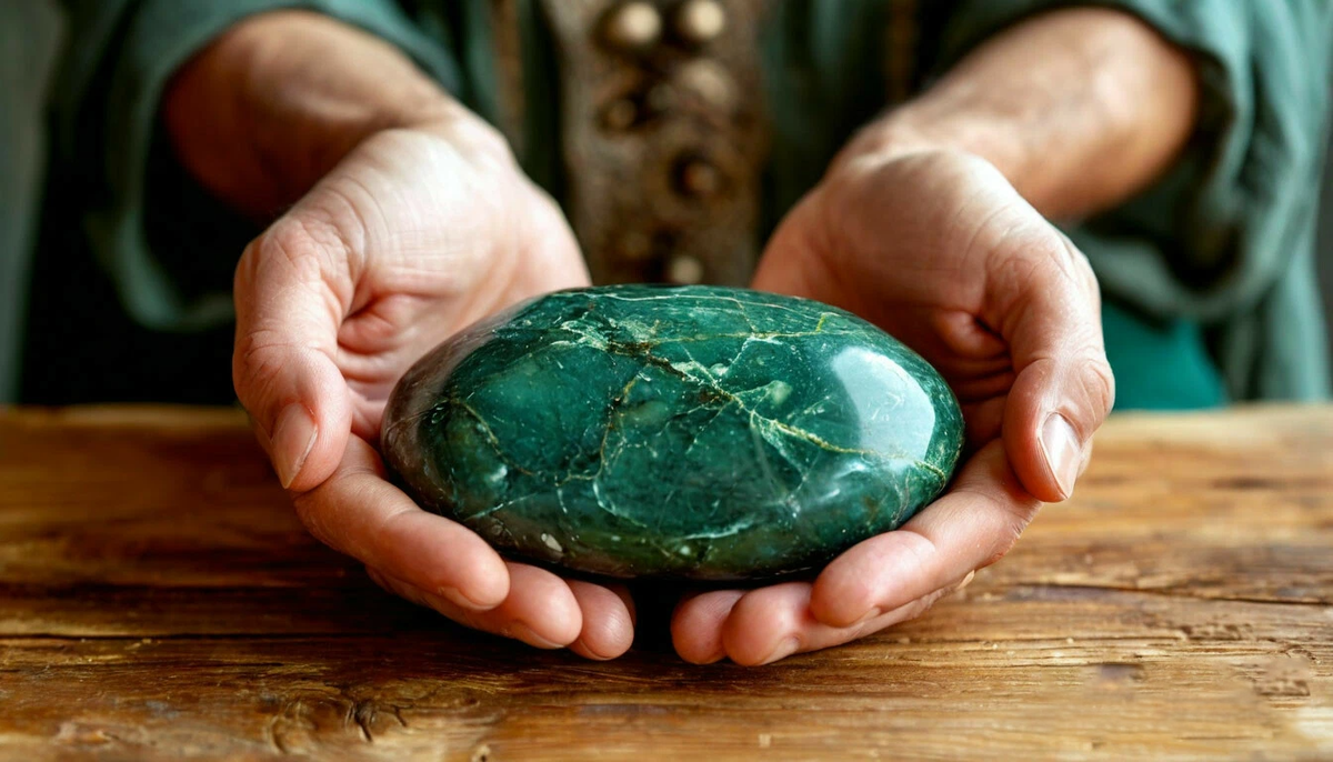 Знахарка взяла в руки необычный зеленый камень размером с куриное яйцо. Она поднесла его к животу больного, и стала осторожными движениями катать его по часовой стрелке. Юна смотрела на камень не отрываясь, будто он звал и притягивал ее. Знахарка заметила странный взгляд своей молодой ученицы.