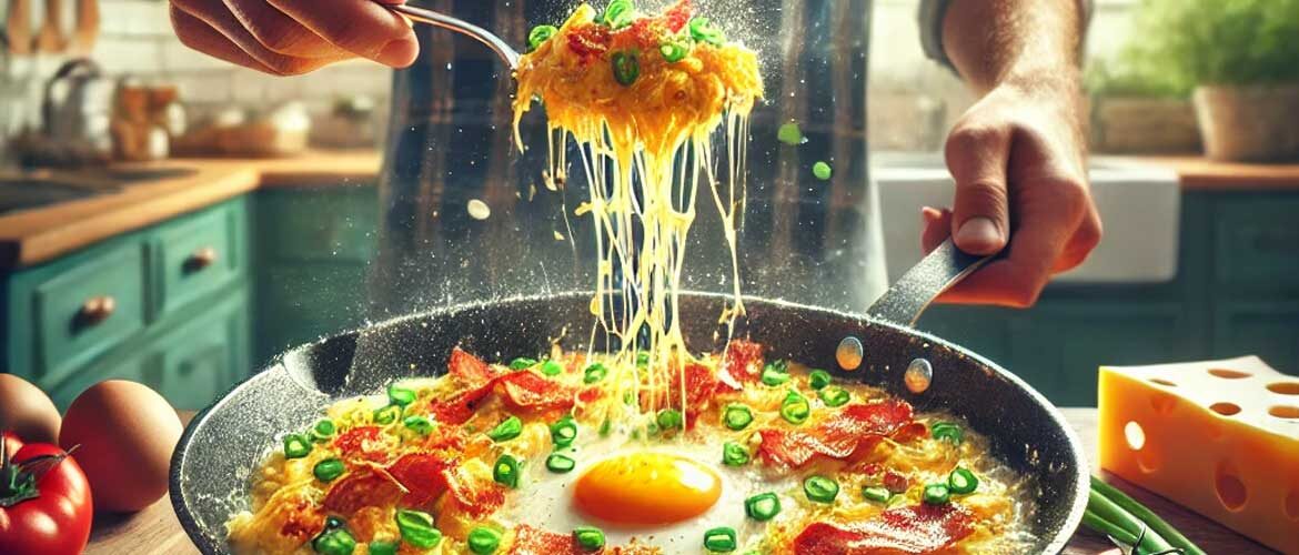 Я был голоден, как волк. Ну, может, даже как целая стая волков! И, как всегда в таких случаях, я не мог придумать, что бы съесть. Единственное, что пришло в голову, — разбить яйцо и приготовить что-то на скорую руку. Ну что ж, пусть будет яичница. Я достал сковородку, посмотрел в холодильник и задумался: почему всегда использовать только яйца и масло? Ведь в холодильнике есть много всего! И тут я решил попробовать что-то новое. Нашёл немного сыра. "А почему бы и нет?" — подумал я и начал тереть его прямо в тарелку. Потом увидел кусочки бекона, которые остались с ужина. С беконом яичница ведь только вкуснее, правда? Дальше всё пошло, как будто я попал в кулинарное безумие. Я добавил зелёный лук, нарезал помидоры, достал остатки шпината, нашёл маринованные огурцы и даже горсть кукурузы. Честно говоря, я уже забыл, что готовлю яичницу — всё больше походило на омлет из сна сумасшедшего повара. Я взбил яйца, добавил молоко (не знаю, зачем, но на тот момент это казалось отличной идеей). По