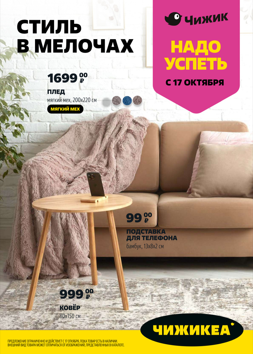 Всем здравствуйте! В этой статье посмотрим анонс новинок из магазина Чижик в формате электронного каталога, товары появятся в продаже с 17 октября. Ну, а кто не видел актуальный обзор всех новинок из Чижика на этой неделе, то ознакомится можно тут 👇 Изображения на канале не являются рекламой, а лишь информирует аудиторию об акциях, скидках и ценах в магазинах. Все, что я пишу и говорю в социальных сетях, это мое оценочное суждение. Как всегда пишу на бегу, в другой магазин, чтобы скорей поделиться с Вами свежими обзорами, могут быть ошибки в статье, так, что ценители русского языка не судите строго 😉 Очень привлекательная обложка с серией товаров из ЧИЖИКЕА. Зачастую приходишь в магазин, а по факту товар выглядит не так истерично как на фото, дизайнеры молодцы :) Внизу мелким шрифтом в этот раз решили обратить на это внимание Продукты Новинки продуктового ассортимента, много вкусняшек к чаю или кофе Новая лапша в оригинальной пачке Товары для кухни и посуда. Тарелки такие,