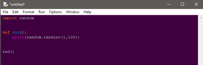 Давайте в качестве примера напишем простейшую функцию, которая при ее вызове будет выводить на экран случайное целое число от 1 до 100. Тут стоит сказать, что для создания функции необходимо написать инструкцию def перед названием функции. Только в таком случае интерпретатор понимает, что мы создаем функцию.