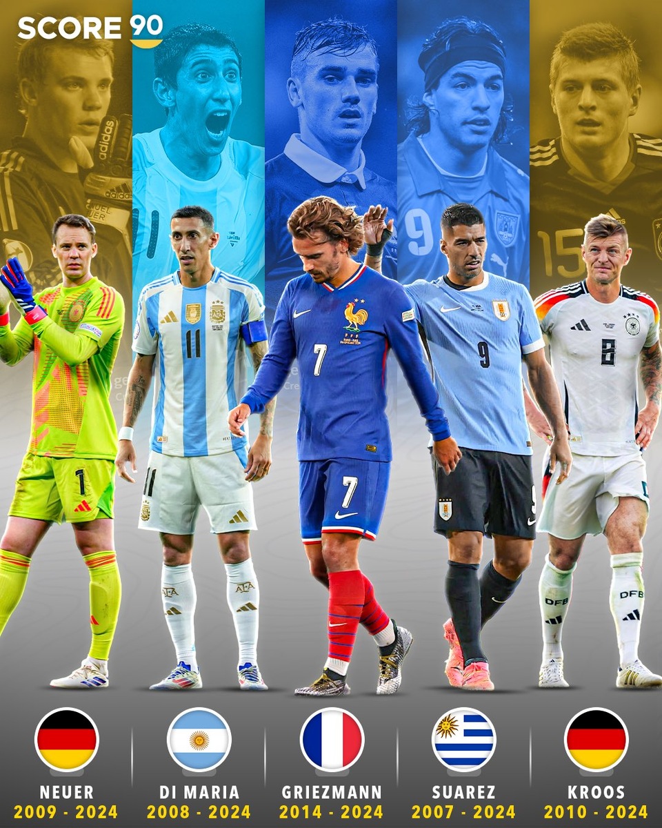 Международный перерыв – подходящий момент вспомнить, кто из футболистов решил поставить точку в своей карьере в национальных командах в этом году. Каждый из перечисленных игроков внес неоспоримый вклад в футбол своих сборных, а кто-то мог бы продолжать играть и помогать товарищам добиваться успеха. Так или иначе, решение принято, а болельщики продолжают горевать и вспоминать своих звезд с благодарностью. Мануэль Нойер Легендарный голкипер дебютировал за главную сборную Германии 2 июня 2009. В 24-летнего Нойера поверил Йоахим Лев и не прогадал. Мануэль помог немцам стать чемпионами мира в 2014 году, взять бронзу на чемпионате мира 2010 и бронзу на Евро 2012 и 2016. Анхель Ди Мария 6 сентября 2008 года Ди Мария дебютировал в основной сборной в матче с командой Парагвая. За год до этого он уже стал олимпийским чемпионом в Пекине. Анхель сыграл в четырёх чемпионатах мира: в 2010, 2014, 2018 и 2022 годах. В 2021 году на Кубке Америки в финале забил победный мяч в ворота бразильцев, сделав А