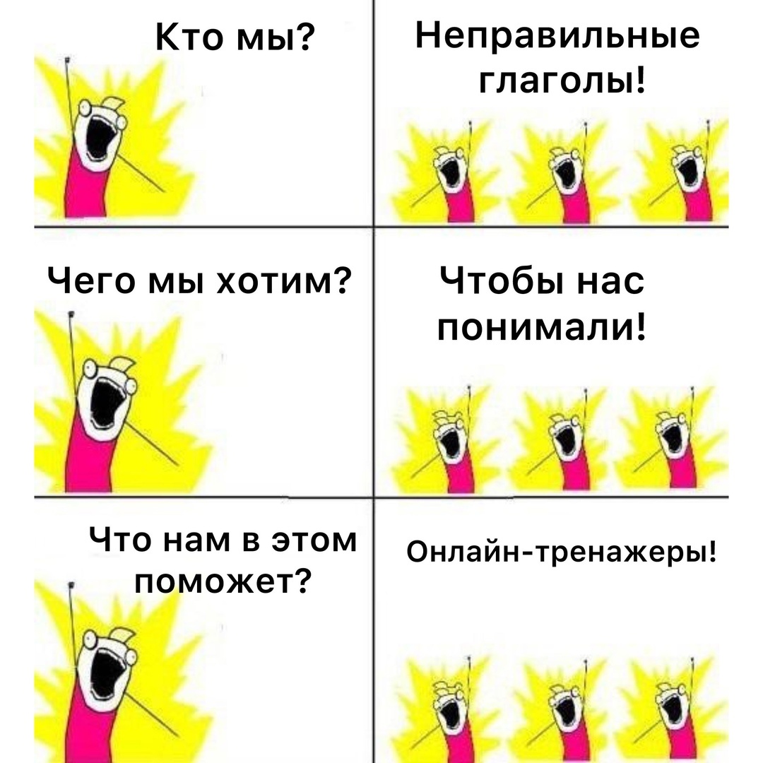 Запоминание новых слов происходит в игровой форме, что не только повышает интерес к самому процессу, но и увеличивает мотивацию освоить больше неправильных глаголов 🚀 На сайте вас ждут 4 онлайн-тренажера с переводом, а также таблицы со всеми формами глаголов, доступные для скачивания. Заходите, выбирайте то, что нужно и повышайте свой уровень Английского, играя ✨ А кто уже попробовал, делитесь своими впечатлениями под постом. Всем рады🤗