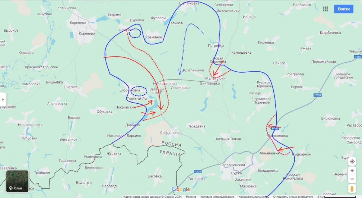 С утра 11 октября вражеские ресурсы начали писать, что якобы ВСУ «все отбили назад». Но тут эксперт обращает внимание на то, что некоторые российские каналы на волне успехов «начали откровенно додумывать. Что мол противник бросает все и убегает из Курской области в Сумскую». - И то и другое чушь. Нет никакого бегства противника, как нет пока и его успехов, несмотря на то, что командование противника ожидаемо оправилось от вчерашней неожиданности, - сообщает Подоляка. Боевики ВСУ пытаются резервами контратаковать занятые российскими войсками новые позиции («пока российские военные не нарастили здесь свои силы»). Основное внимание сейчас уделяется участку трассы Коренево-Суджа между Зеленым Шляхом и Свердликово. Бойцам РФ важно удержать позиции и не дать противнику в Любимовке-Толстом Лугу вырваться из окружения. А самое главное. деблокирующим частям ВСУ пробить коридор. По-прежнему остается важным участок дороги от Зеленого Шляха на Малую Локню. Продолжаются бои в районе Новоивановки, г