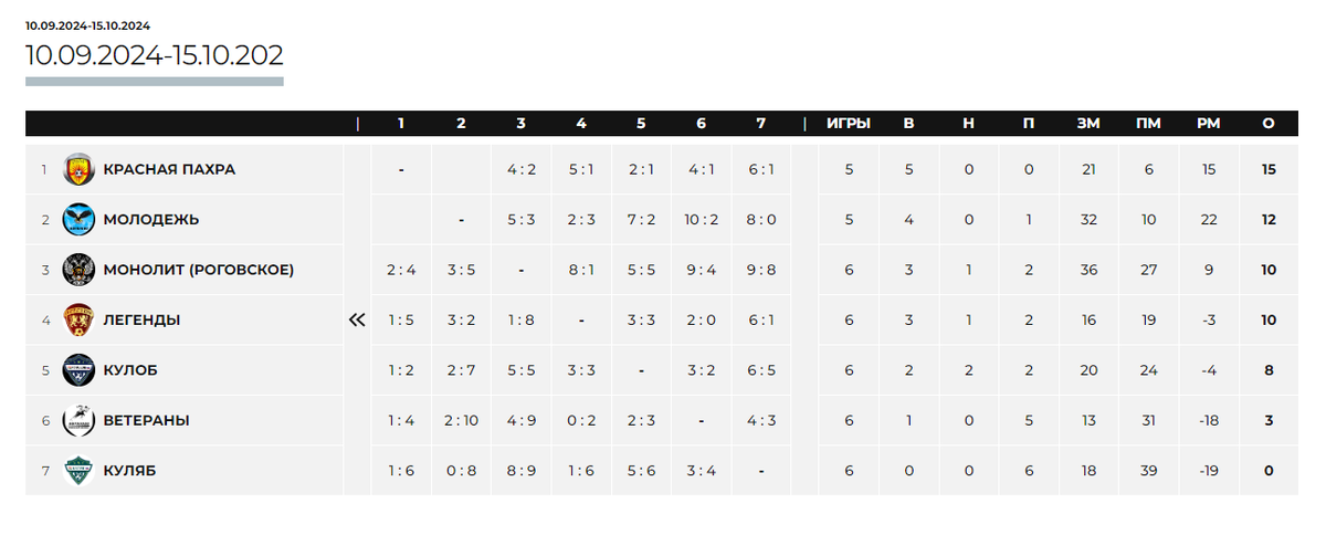 15.10.2024 года (Вторник) в 21:00 состоится матч Молодежь (Вороновское) - Красная Пахра