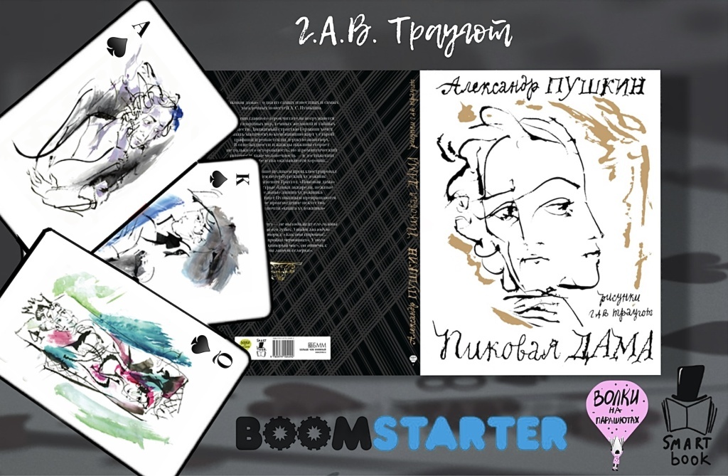 «Пиковая дама» Александра Сергеевича Пушкина — одно из самых загадочных и увлекательных произведений в мировой литературе. Это захватывающая история о мистике, азарте и разрушительной силе человеческих страстей. Главный герой, молодой офицер Герман, узнает о тайне трёх игральных карт, способных принести несметное богатство. В огне жадности и жажды наживы сгорает не только его осторожность, но и романтический интерес и даже человечность — в достижении цели все средства оказываются хороши. В России с «Пиковой дамой» знакомятся уже в школьном возрасте, так как повесть входит в программу литературы 8 класса. Идея художественного переосмысления классической повести к 225-летнему юбилею А. С. Пушкина воплощена в работах всемирно известного художника Александра Георгиевича Траугота. «Г.А.В. Траугот» — аббревиатура, которая складывается из имен братьев Александра и Валерия, а также их отца Георгия Николаевича, у которого они переняли мастерство. Этот семейный псевдоним Александр Георгиевич Тра