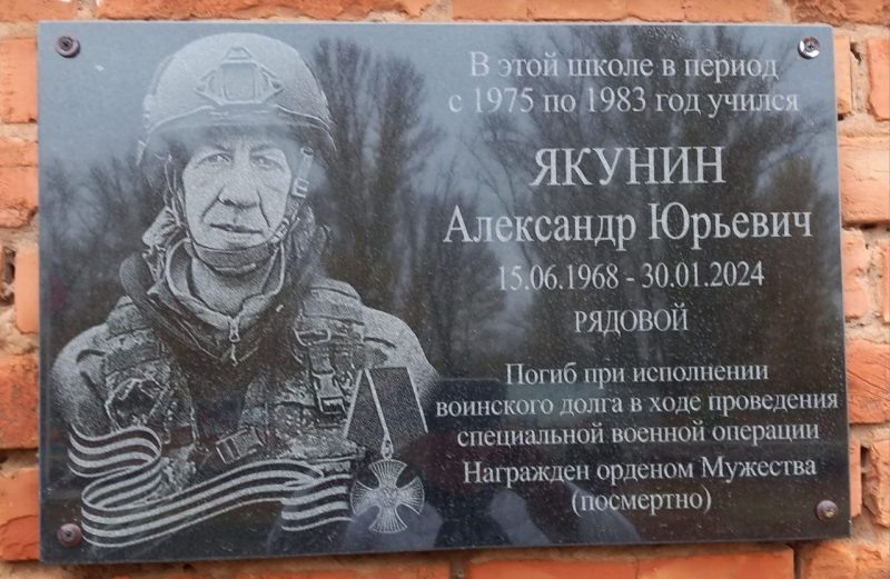 Военнослужащий из Сорочинского городского круга Оренбургской области погиб в ходе спецоперации на Украине. Торжественное открытие мемориальной доски в память о выпускнике — участнике спецоперации Александре Якунине прошло в Фёдоровской школе. Он учился там с 1975 по 1983 год. Оренбуржец погиб на 56 году жизни и посмертно награждён орденом Мужества. Мемориальная доска была установлена на фасаде школы. На торжественное открытие пришли ученики и учителя школы, родные героя, представители администрации и земляки. Замглавы округа по социальным вопросам Татьяна Фёдорова отметила, что память о мужестве Александра Якунина будет жить долгие годы. — Каждый ученик, каждый педагог, каждый человек, вошедший в школу, будет знать о том, что здесь учился герой, — сказала Александра Якунина. Память бойца почтили минутой молчания. Участники церемонии открытия мемориала возложили цветы к памятной доске. Напомним, в ночь на 24 февраля 2022 года Владимир Путин объявил о начале военной спецоперации в Донбас