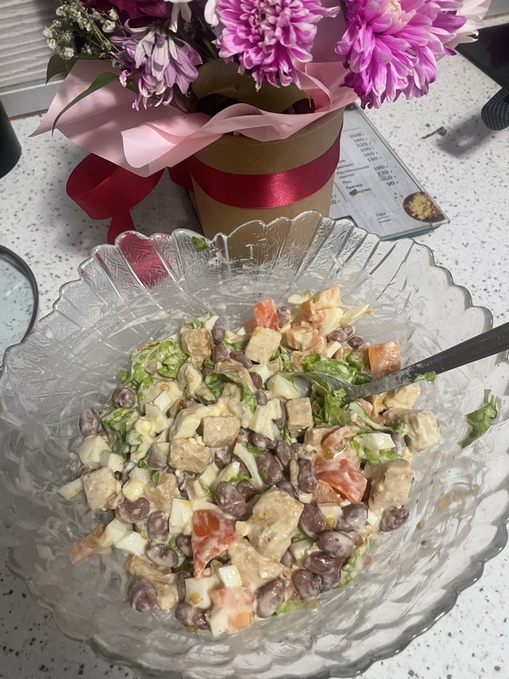 Салат из красной фасоли, курицы и яйца.