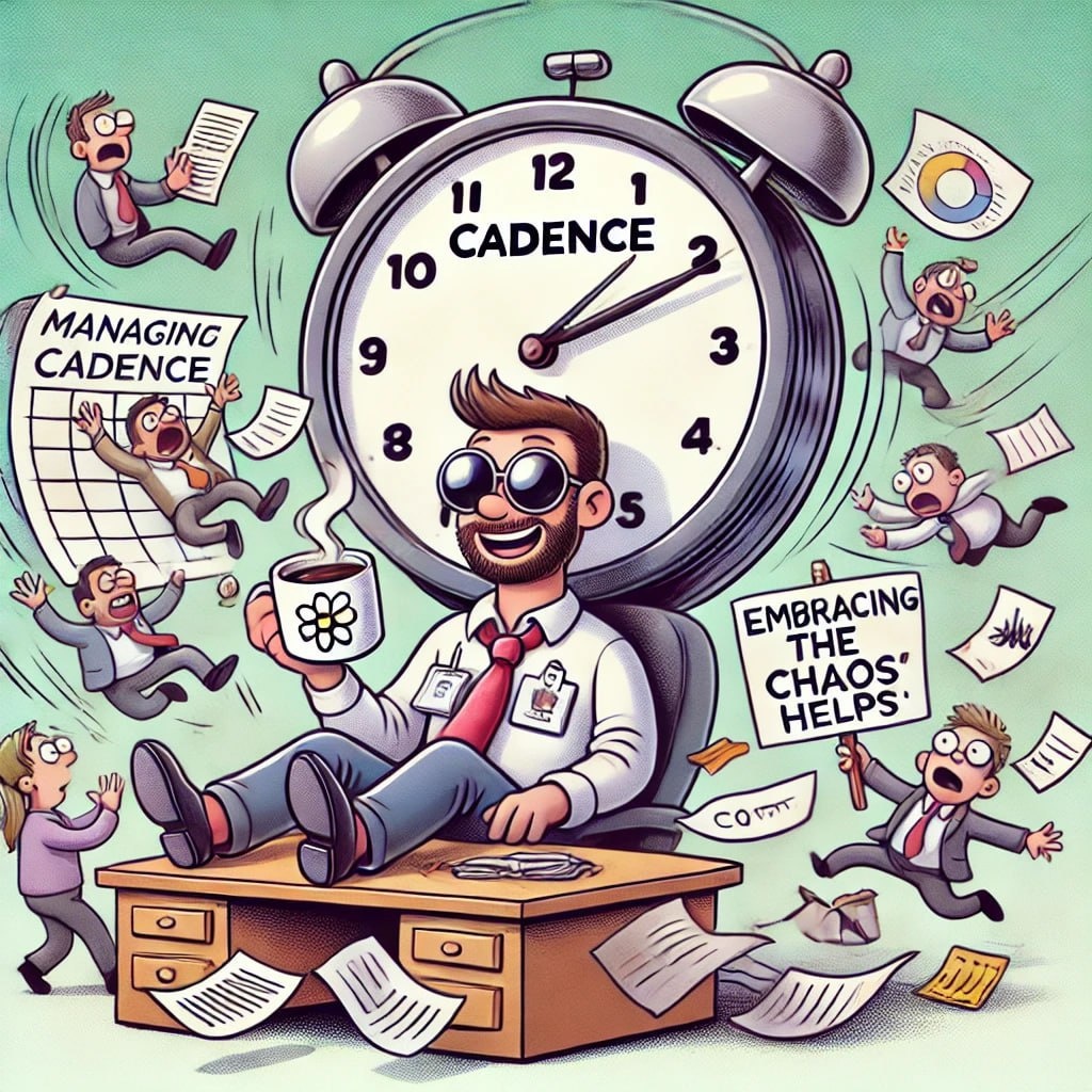 Итак, друзья, представьте: менеджер решил внедрить Закон ритмичной устойчивости в свою жизнь и проекты. Ну, думает, все будет четко — ритм, каденции, минимизация хаоса! Но... не тут-то было. Далее от первого лица. Понедельник: Всё началось как по нотам. Завел будильник, зарядка, завтрак, запланировал задачи. Команда вся в сборе, настроены на успех! В голове одна мысль: "Вот она, гармония и ритм!". Вторник: Утро началось с того, что будильник решил "взять выходной". Ну, ладно, слегка сбились с ритма. Прихожу на утренний созвон, а команда встречает меня так: "А мы думали, ты нам доверяешь и контролировать не будешь!" (да, они уже прочитали пост про парадокс контроля и доверия). Ну, думаю, ладно, доверяем, продолжаем. Среда: Всё идет по плану, но тут неожиданно вылезает инцидент: сломался принтер, да еще и интернет "глючит". Думаю: "Спокойно, главное ритм!". Взял глубокий вдох, пошел чинить принтер (кто же еще?), а в это время интернет вернулся сам, и команда уже справилась с задачами бе