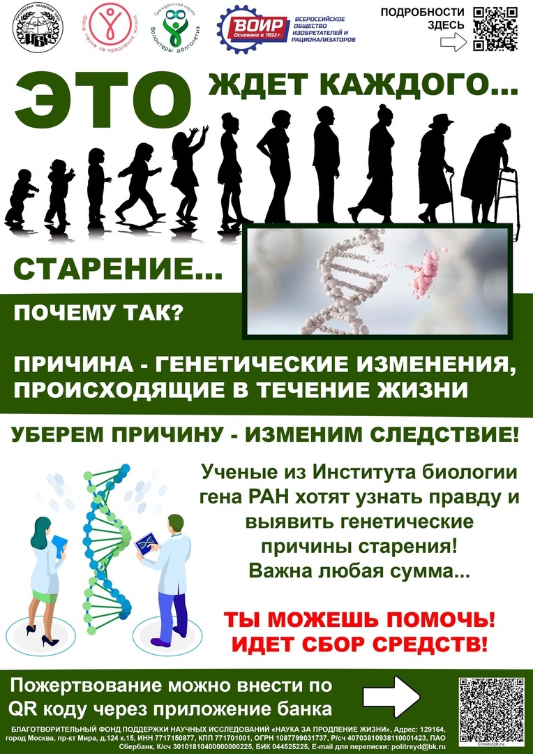 По всей стране активно продолжается сбор средств в рамках фандрайзинговой кампании фонда "Наука за продление Жизни", направленный на поддержку исследований генетики старения. Цель проекта - закупить необходимое оборудование для проведения исследований Института биологии гена Российской академии наук по поиску генетической конфигурации ответственной за продление жизни. В ходе проекта ученые создадут модифицированные линии мух-дрозофил с введенными в их геном дополнительными генами, каждый из которых направлен против одного из признаков старения. Успешное проведение экспериментов позволит создать эффективное средство для радикального продления человеческой жизни. Президент фонда "Наука за продление Жизни" Михаил Мельцер рассказал, что сбор средств проходит успешно: "Искренне хочу поблагодарить всех людей, которые смогли оказать посильную помощь в несколько сотен рублей на самую великую задачу современности." Особую благодарность Михаил выразил благотворителю, сделавшему наибольшее на се