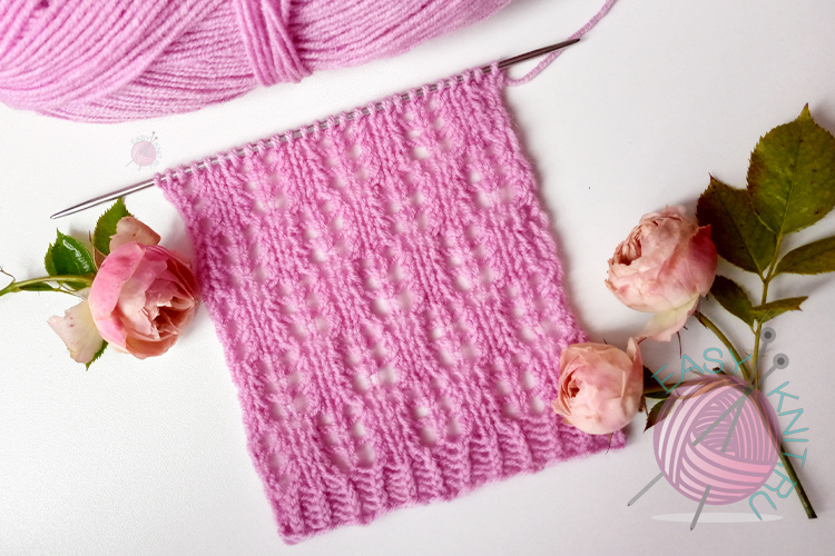 "Ажурная шахматка" воздушный и нежный узор спицами. Описание+схема