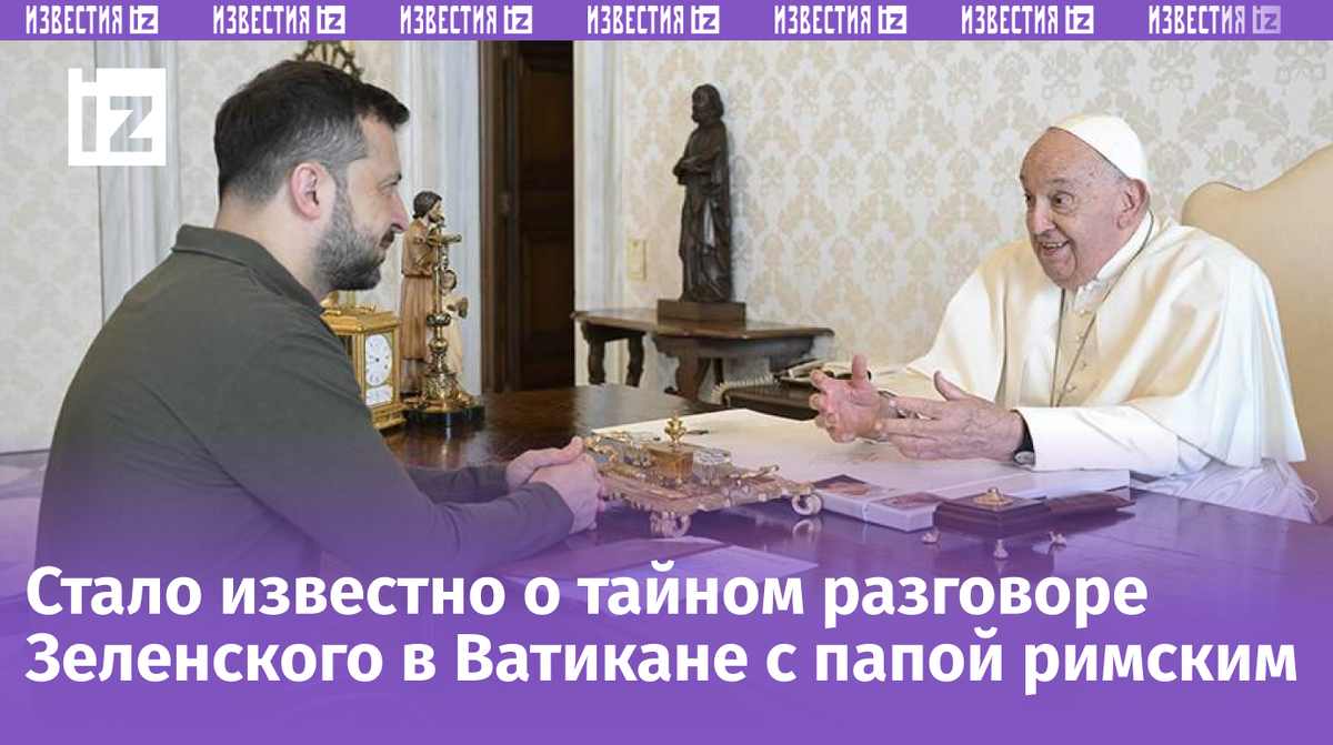 Папа римский Франциск во время встречи с президентом Украины Владимиром Зеленским, срок полномочий которого истек в мае, настаивал на организации мирных переговоров с Россией. Об этом заявил председатель Всемирного союза староверов (ВСС) Леонид Севастьянов. «Встреча длилась 30 минут, и папа предложил Зеленскому помощь в организации второго «саммита мира», сказав, что будет сам на нем присутствовать, если будет приглашена Россия», — сообщил Севастьянов в беседе с «РИА Новости». По его словам, Франциск считает, что Зеленский добьется большего в своих интересах, если начнет переговоры. Папа римский убежден, что через дипломатию украинский лидер сможет сделать свое положение крепче, а в случае продолжения боевых действий — потерять всё. Севастьянов добавил, что Франциск предложил Зеленскому помощь в налаживании связей с Россией, а также в нахождении компромисса. В этот день папа римский Франциск принял Зеленского в Ватикане. Он указал в своем Telegram-канале, что главной повесткой встречи