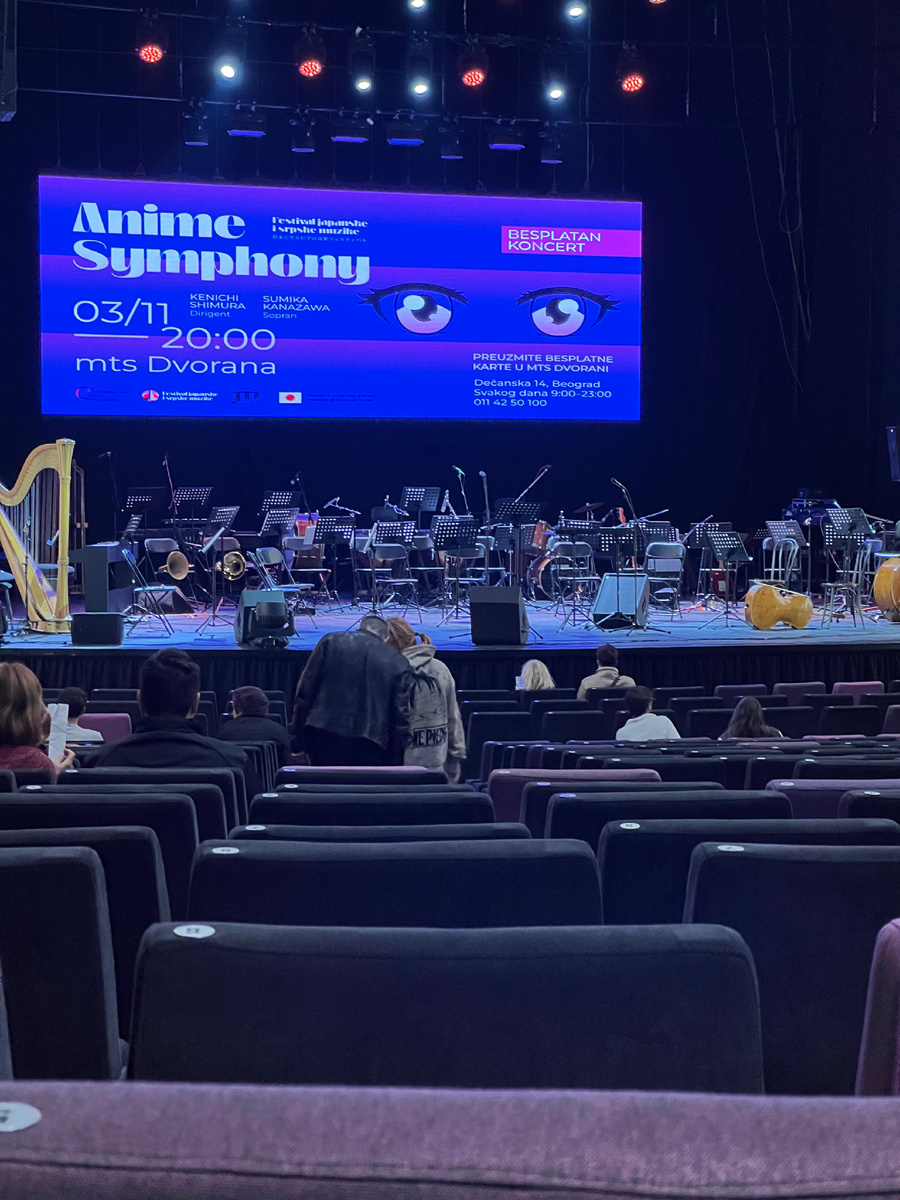 Аниме и музыка переплетаются в удивительном танце вдохновения, отражая страсть Японии к этому искусству Все статьи, фотографии и видео, представленные здесь, являются результатом творческой работы и авторского труда. Поэтому использование материалов без согласия автора недопустимо. Моя дочь, погруженная в мир аниме, вся светиться, рассказывая о любимых персонажах. Я и сама с удовольствием смотрю иногда аниме. Конечно я не фанат, но очень люблю музыку Миядзаки. С аниме я познакомилась в 1996 году, когда по телевидению показали "Сейлон Мун" и мы вместе с дочерью его смотрели. Поэтому, когда в местных новостях написали, что в Белграде пройдет фестиваль японской и сербской музыки, мы не раздумывая решили ехать. Аниме-это не мультфильмы для детей. Основная часть аудитории аниме-сериалов - это подростки и взрослые, поэтому они так популярны в разных странах мира. В Японии аниме смотрят с 1950-х годов, когда стали появляться телевизоры. Концерт был бесплатным в рамках сотрудничества Яп
