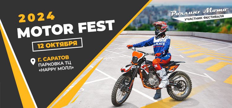 Авто- и мотолюбители Саратова и окрестностей, все на фест! 12 октября в Саратове на территории ТЦ «Happy Молл» пройдет ежегодный фестиваль MOTOR FEST в формате ROAD SHOW! На фестивале будет представлена большая авто- и мотовыставка, и Роллинг тоже приготовили свою выставочную зону. Приходите знакомиться с питбайками KAYO MINI К125EM и KAYO EVOLUTION, а также другой внедорожной мототехникой KAYO для всей семьи. Из необычного: организаторы соорудили трассу искусственного бездорожья, где автомобили разных брендов покажут свои возможности на экстремальных препятствиях. А главное - под руководством опытных инструкторов можно протестировать машины самостоятельно. Программа фестиваля планируется насыщенная: музыка от диджея, детская анимация, встречи с топовыми блогерами Саратова и розыгрыши ценных призов! Сбор всех любителей автомобилей, мотоциклов и скорости на парковке ТЦ «Happy Молл»! Также ждем вас в мотосалонах Саратова, где можно выбрать себе мототехнику и экипировку. Адреса салонов