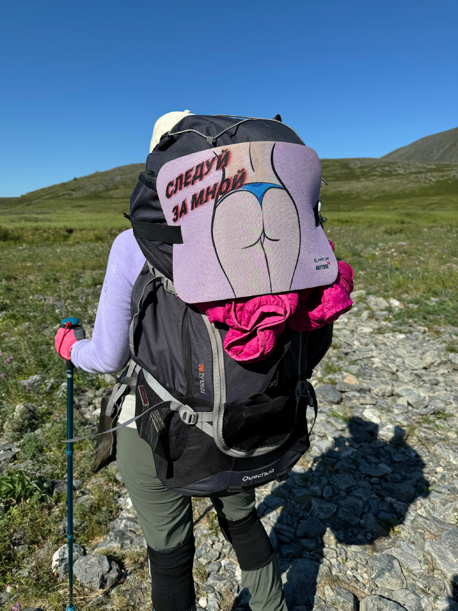 6 августа 2024 года, первый день пешки. Утром проснулись отдохнувшие и бодрые, и сегодня часть команды 13 человек уходит в пешку, а Денис с Игорем и Аленой остаются в лагере охранять вещи. Алена тоже хотела пойти в пешку, но повредила ногу, когда спускалась с трэкола, и решила не рисковать, чтобы не подвести команду, если вдруг в какой то момент, не сможет идти, с больной ногой. На пешку у нас запланировано 45 км и три дня. Мы хотим дойти до каньона реки Большая Уса и закольцевав маршрут, вернуться в лагерь через Эстотинский перевал. Я сама в таких пешках ни разу не была, с ужасом смотрю на свой рюкзак, как я его попру через два перевала, вещей и так взяла по минимуму, благо погода настроилась. Берем с собой мою палатку, она весит немногим более 3-х кг, в ней можно спать вчетвером, и парни раскидывают ее на троих, я освобождена от ее таскания. Общественные продукты, которые нужно было нести мне, парни тоже раскидывают по своим рюкзакам, спасая мою спину, и поэтому мой рюкзак на выходе