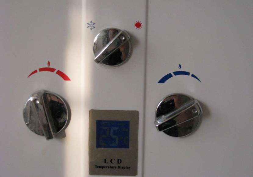 Колонки-полуавтоматы российского и зарубежного производства имеют два регулятора (крутилки или тумблеры) на передней панели для настройки. Первый регулятор позволяет устанавливать температуру воды, второй – управляет силой потока воды.