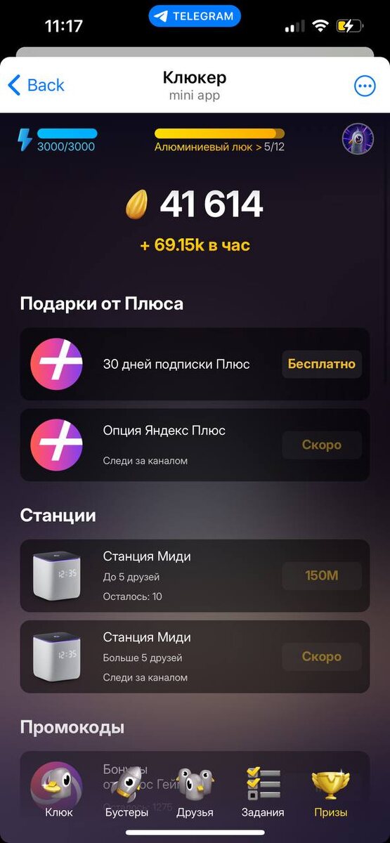 Не успели все отойти от хомяка, как появился голубь - новая тапалка от Яндекса - Клюкер. Кому лень читать всю статью, краткая суть игры - тапаешь на голубя -> получаешь зерна -> прокачиваешь голубя -> зарабатываешь больше зерен и обмениваешь их на призы от Яндекса. «Согласно сюжету, обычный дворовый голубь живёт на деревянном люке и хочет перебраться на люк потеплее и ближе к центру. Чтобы развивать персонажа и открывать новые уровни, игрокам нужно „клюкать“ и зарабатывать зёрна. Полученную внутриигровую валюту можно тратить в магазине и покупать бустеры для развития персонажа» Призы от Клюкера постоянно пополняются. Сейчас список выглядит примерно так: Если вы зарегистрируетесь просто так, вы не получите баллы. При регистрации по реферальной ссылке вам начислят 50 000 баллов. Каждый день в Клюкере появляются новые задания. Выполняя их, вы не только накапливаете баллы, но и открываете доступ к более сложным и выгодным задачам. Задания обычно такие: подписаться на телеграм-каналы серви